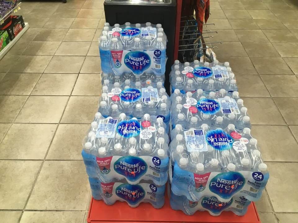 Once re-stocked on bottled water, one convenience store near UT-Austin priced 24-count cases at $8.99 in light of demand amid citywide shortages. Photo by Tony Cantú/Patch staff.