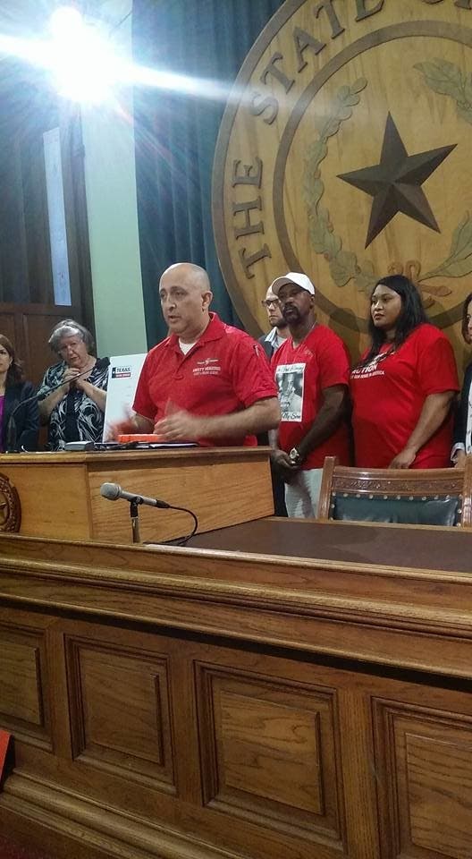 AUSTIN, TX — People opposed to mulled legislation that would allow Texas residents to carry handguns without a state-issued license—a measure proponents have dubbed "constitutional carry"— gathered inside the Capitol on Monday to air their objections.
