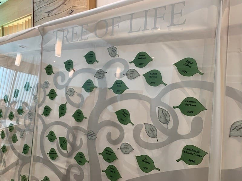 Ascension Seton and Texas Organ Sharing Alliance (TOSA) partnered to create the Tree of Life wall memorial to commemorate those who donated organs and saved lives. During the Tree of Life Ceremony, leaves with organ donor’s names were added to the tree.