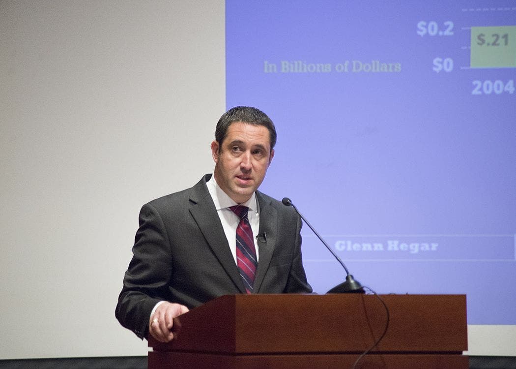 >>> Photo of Glenn Hegar delivering his Biennial Revenue Estimate report courtesy of Comptroller of Texas