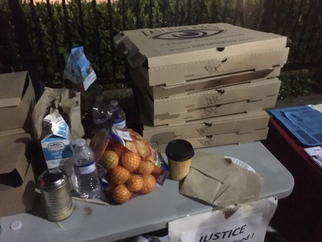 Sustenance in the form of oranges, pizza, kolaches and protein bars along water and coffee were made available to those attending the vigil — some of the food donated from area merchants. Photo by Tony Cantú/Patch staff.