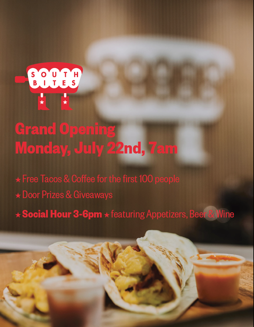 SouthBites invites SXSW Center tenants, nearby downtown neighbors, and residents across Austin to join in celebrating the official grand opening launch with a variety of specials, discounts, and promotions throughout the day. Beginning at 7 a.m. when doors open, SouthBites will offer one complimentary cup of drip coffee and breakfast taco to its first 100 patrons.