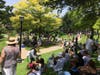 Some chose shadier environs a bit further away from the main stage, letting their signs speak for themselves.