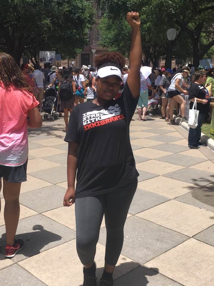 Lauren Ashlee Wallace strikes a defiant pose while supporting immigrants' rights.