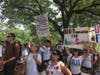 The massive attendance at the Austin rally was made more impressive given the sweltering heat, with the high temperature hovering just under 100 degrees Fahrenheit. Despite those conditions, the spirited crowd — some standing near in front of the south Capitol steps where some two dozen speakers addressed the crowd while others sat on the lawn of the state grounds, listening from farther away under the shade of trees for protection from the sun. Watering stations were set up for the masses, as volunteers distributed free bottled waters to those gathered in need of hydration.