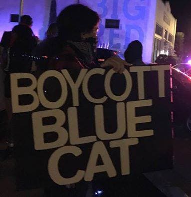 Blue Cat Cafe owner Rebecca Gray didn't return a call from Patch seeking comment. Reportedly, the business owner has suggested there is surveillance video of the defacement, but as of Tuesday, it's not been released. Meanwhile, a GoFundMe page has been created to help defray repairs costs while blaming protesters for the damage, with one supporter labeling peaceful protesters as "domestic terrorists," blaming members of their ranks for the vandalism while offering no evidence to back their claims.
