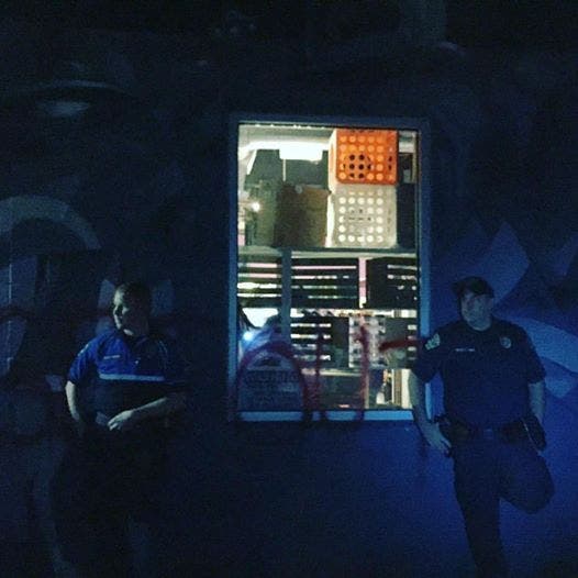 On a related front, the reaction by Austin police to the Blue Cat Cafe owners' reports has raised some eyebrows among supporters of Jumpolin and its ordeal that re-energized the anti-gentrification movement in East Austin. On its Facebook page, Defend Our Hoodz noted the presence of six police cars on they day of their Friday protest — after the discovery of the graffiti and property damage — and a dozen police officers safeguarding the Blue Cat Cafe.