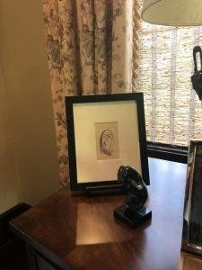 My love of art goes beyond paintings. I also love the sketches and small bronzes used as models for larger works. With regard to sketches, if you look closely, you can really see the way in which the artist’s mind works as he or she is planning a piece. This is especially interesting when the sketch or sketches are used to paint a larger piece that ultimately becomes well known or famous. The small bronze and sketch pictured here, which sit on a table in my living room, are the work of Auguste Rodin. Both were purchased at a Christie’s auction in New York. Rodin is of course famous for his great work called the The Thinker. He has many more works on display all over the world. It always interests me to trace the history and career of the great artists. For example, Rodin is considered by most critics and historians to be one of the modern sculpture greats. Yet, Rodin was rejected three times and was never allowed admission to École des Beaux-Arts, the preeminent Paris school of art. Next time you feel low, ponder that.