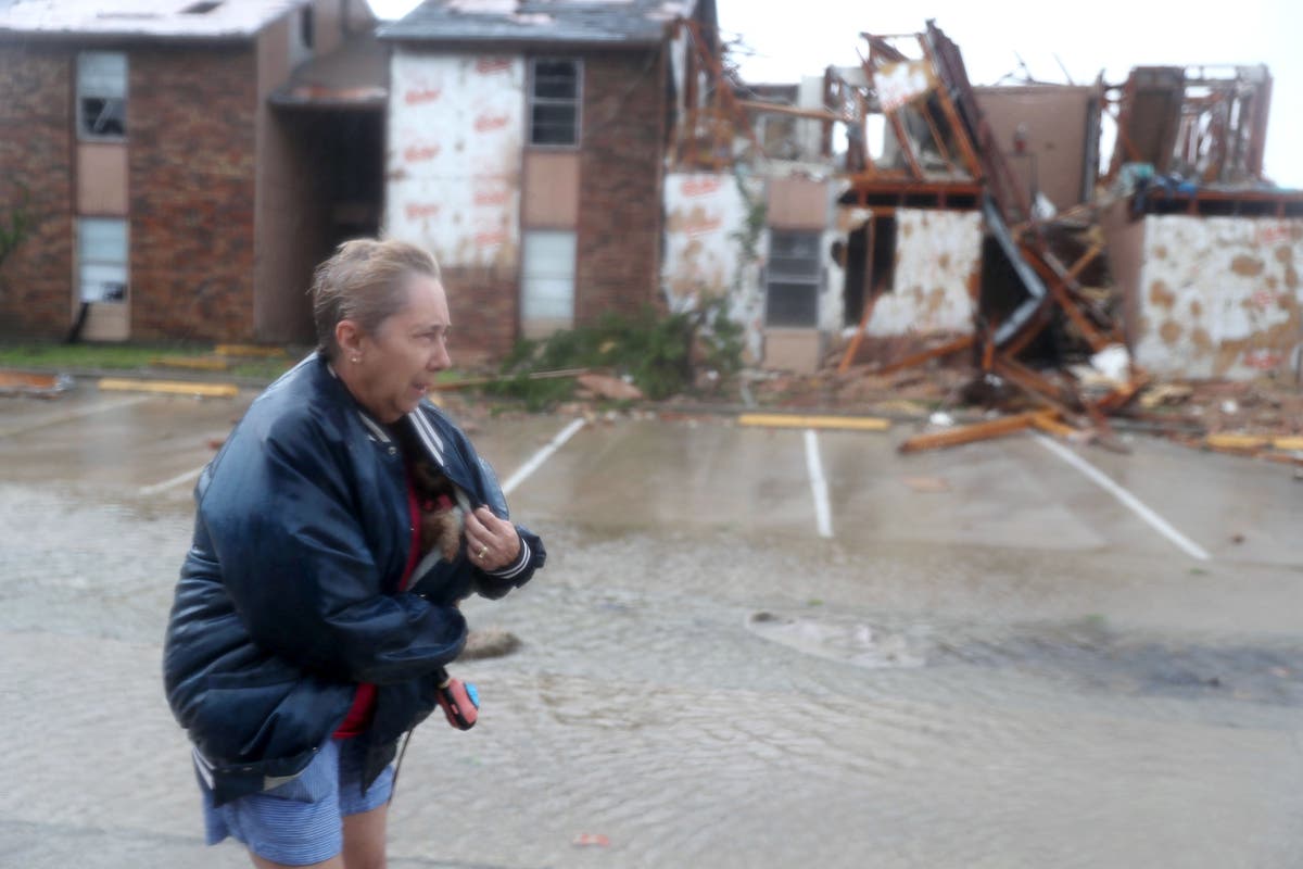 Jacque McKay walks through the Rockport apartment complex where she lives with her dog and rode out the storm after Hurricane Harvey destroyed many of the apartments when it slammed into the seaport town on Aug. 25. McKay said she was able to rescue her dog but lost pretty much everything else. (Photo by Joe Raedle/Getty Images)