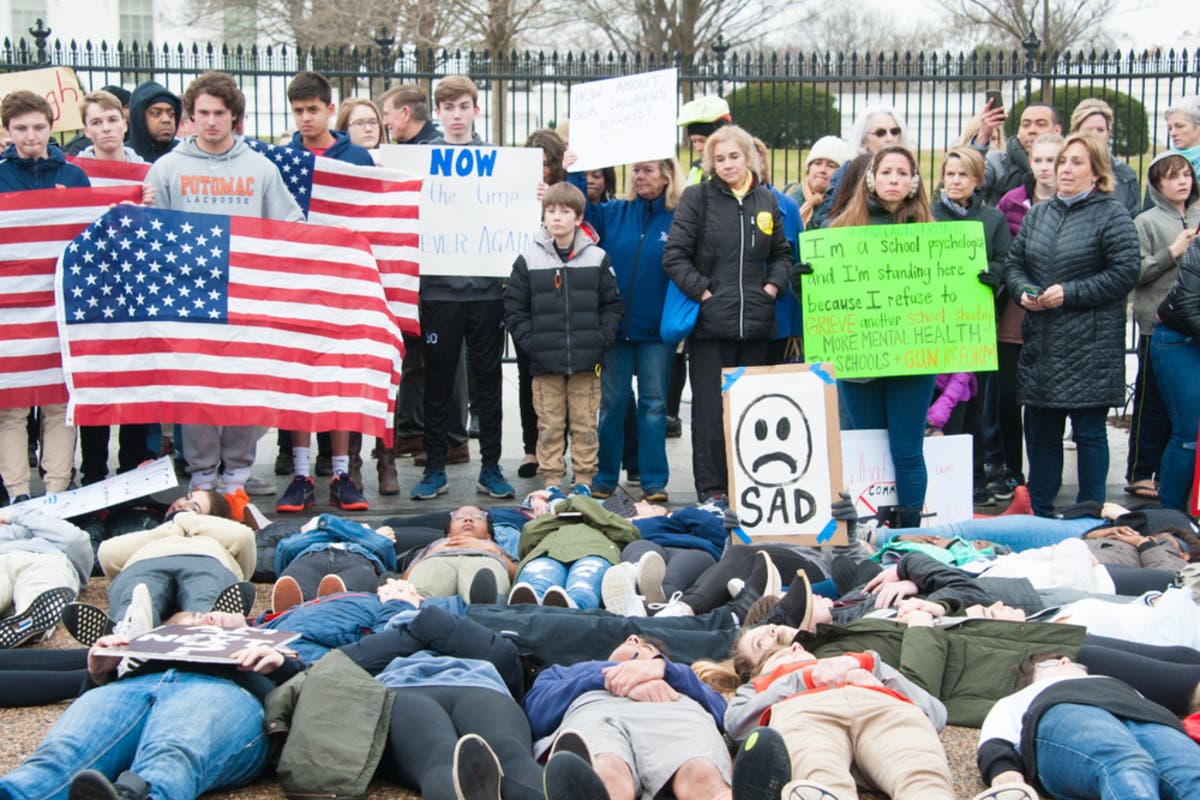 Image: Shutterstock: Students angered by gun violence in schools stage a protest outside the White House on Monday.