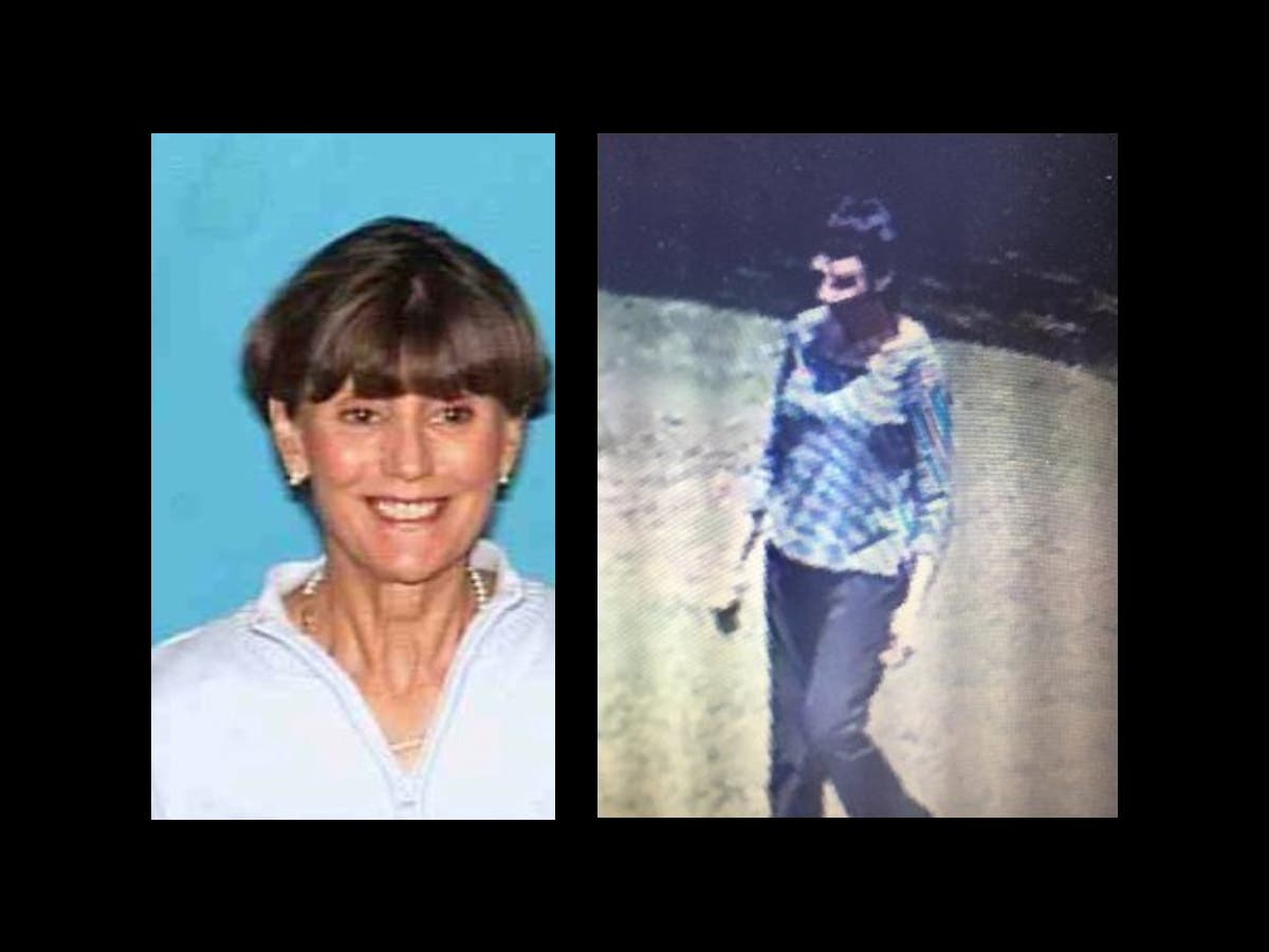 The woman was last seen wearing a light blue shirt with dark blue stripes and dark pants.