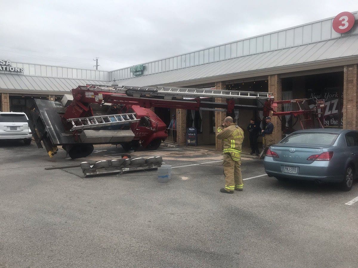 Firefighters responded to 8127 Mesa Dr. in an incident that dramatically illustrating the perils of operating aerial lift vehicles.