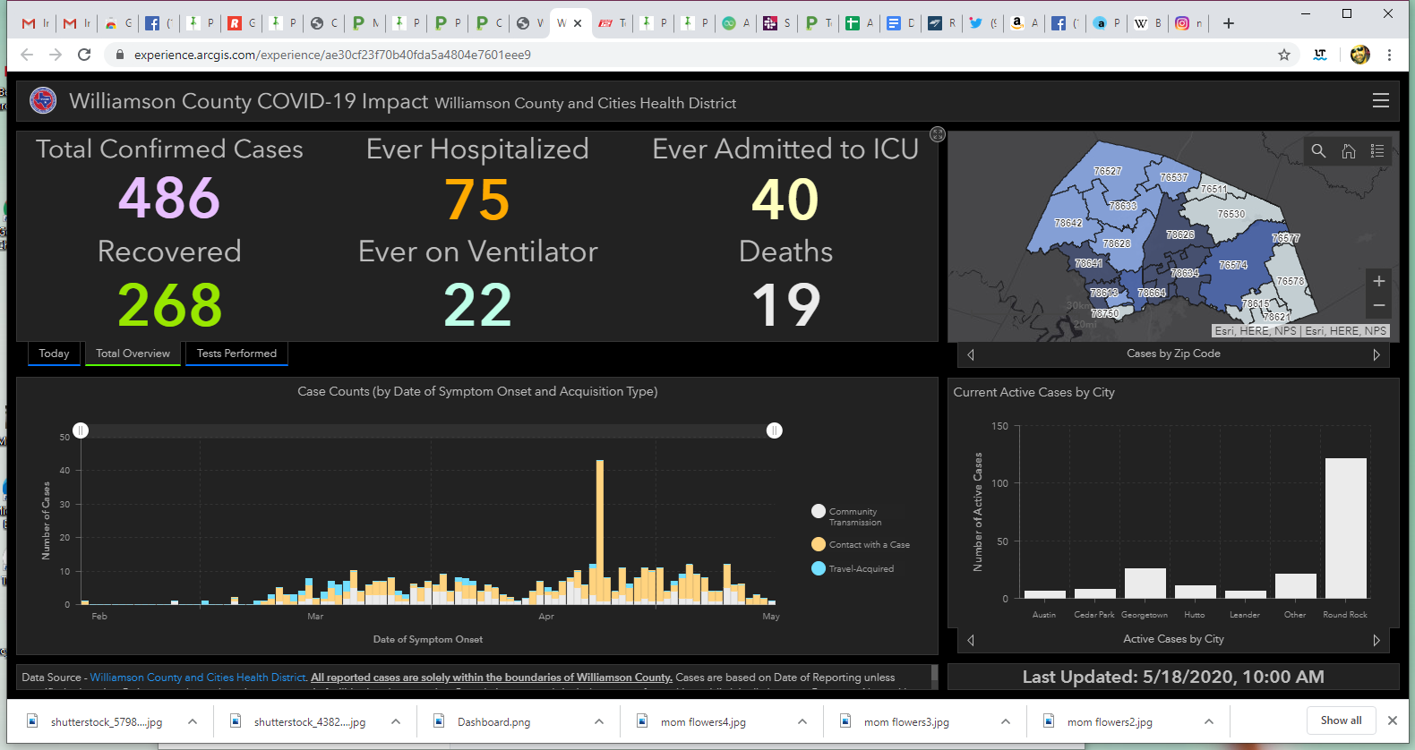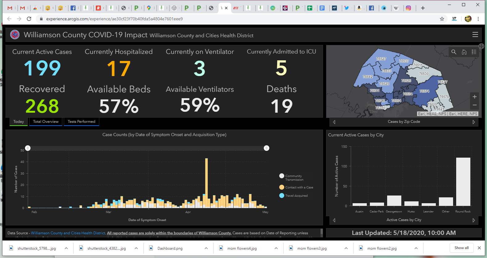 A screenshot from the Williamson County and Cities Health District on May 18 shows current data as compared to the previous 24 hours.