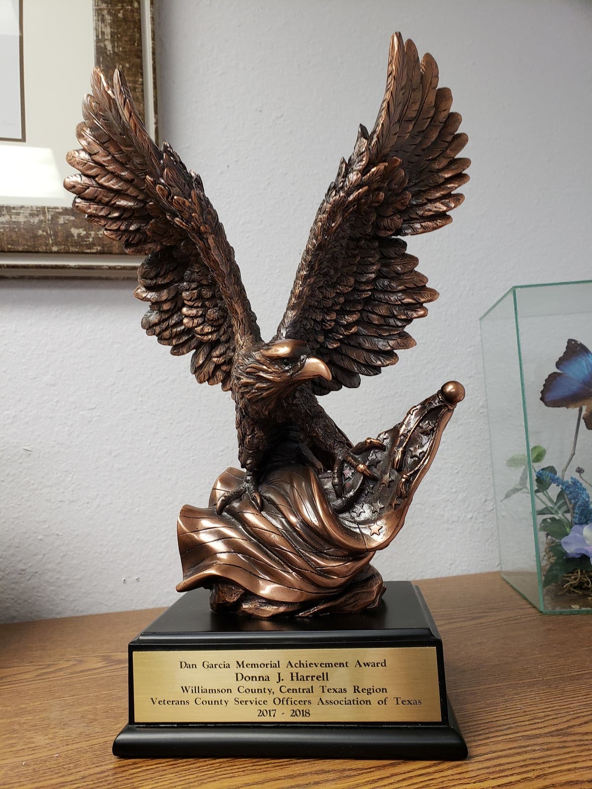 WILLIAMSON COUNTY, TEXAS — Donna Harrell, Veteran Service Officer/Director of Veteran Services for Williamson County, was awarded the 2017-2018 Dan Garcia Memorial Achievement Award in a surprise presentation today during the Commissioners Court meeting on Tuesday.