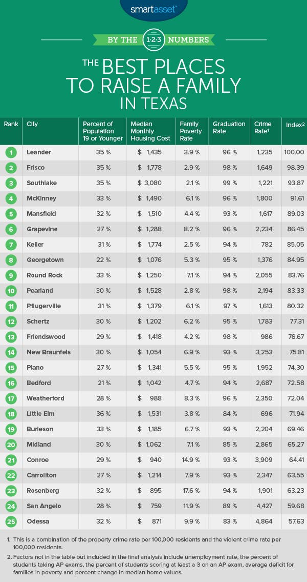 The family poverty rate of 7.1 percent in Round Rock also likely weighed the city down in the rankings. It was the second-highest such percentage in the top ten compared with the 8.2 percent rate in Grapevine, another city located in North Texas.