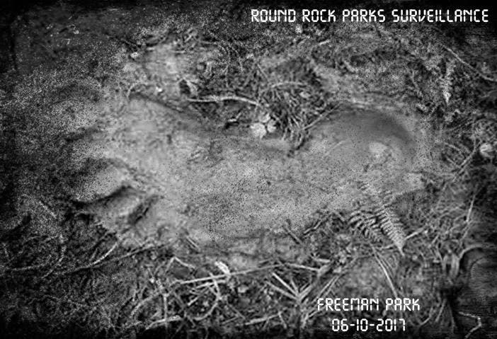 >>> Image: An imprint supposedly made by a Bigfoot previously released by Round Rock Parks & Recreation officials that we now know wasn't authentic. Sorry.
