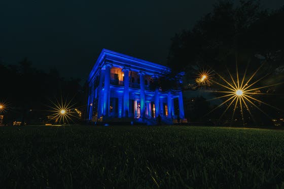 On Saturday, the governor's mansion joined in the illuminated tribute as the historic site was covered in blue light in similar tribute to health care workers in Texas.
