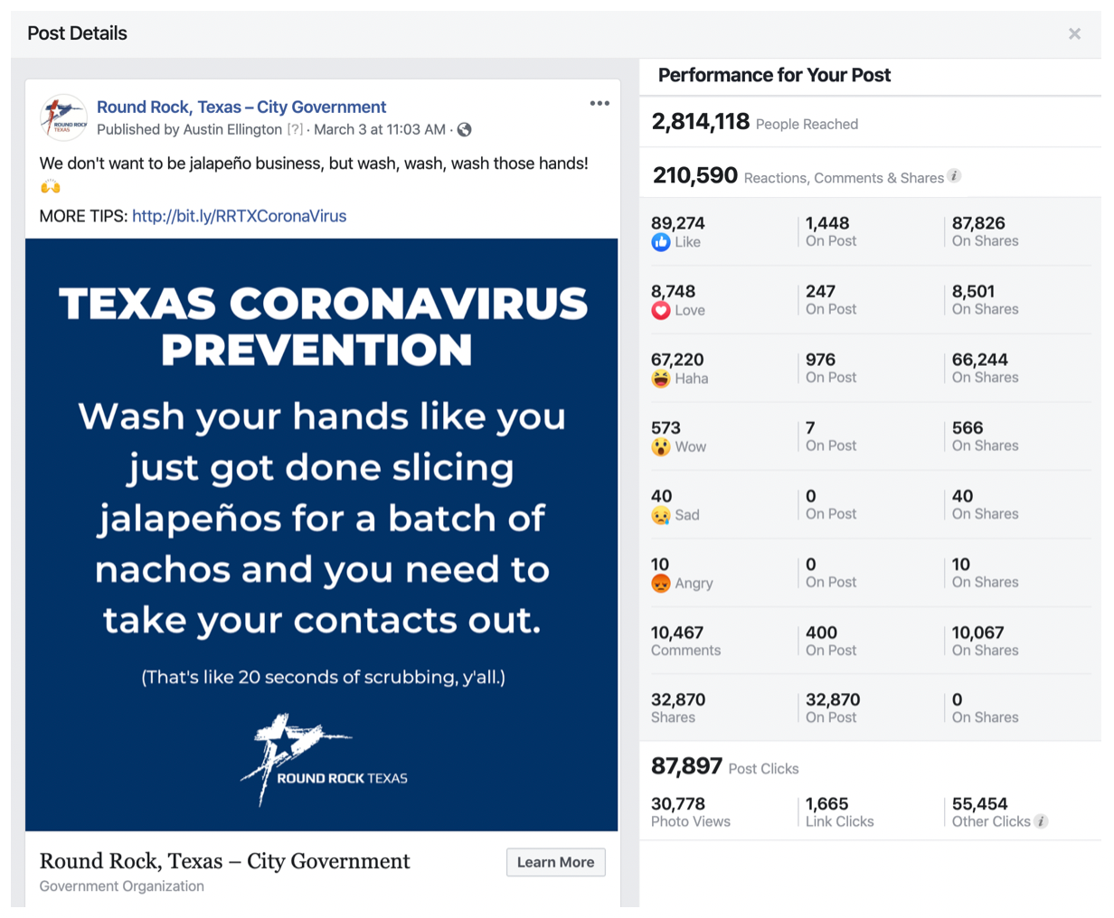 That 2016 campaign won awards, including recognition from Facebook as being its favorite government post. The memorable campaign also kept residents engaged throughout its run β a positive contagion the city hopes to replicate with the COVID-19 message.