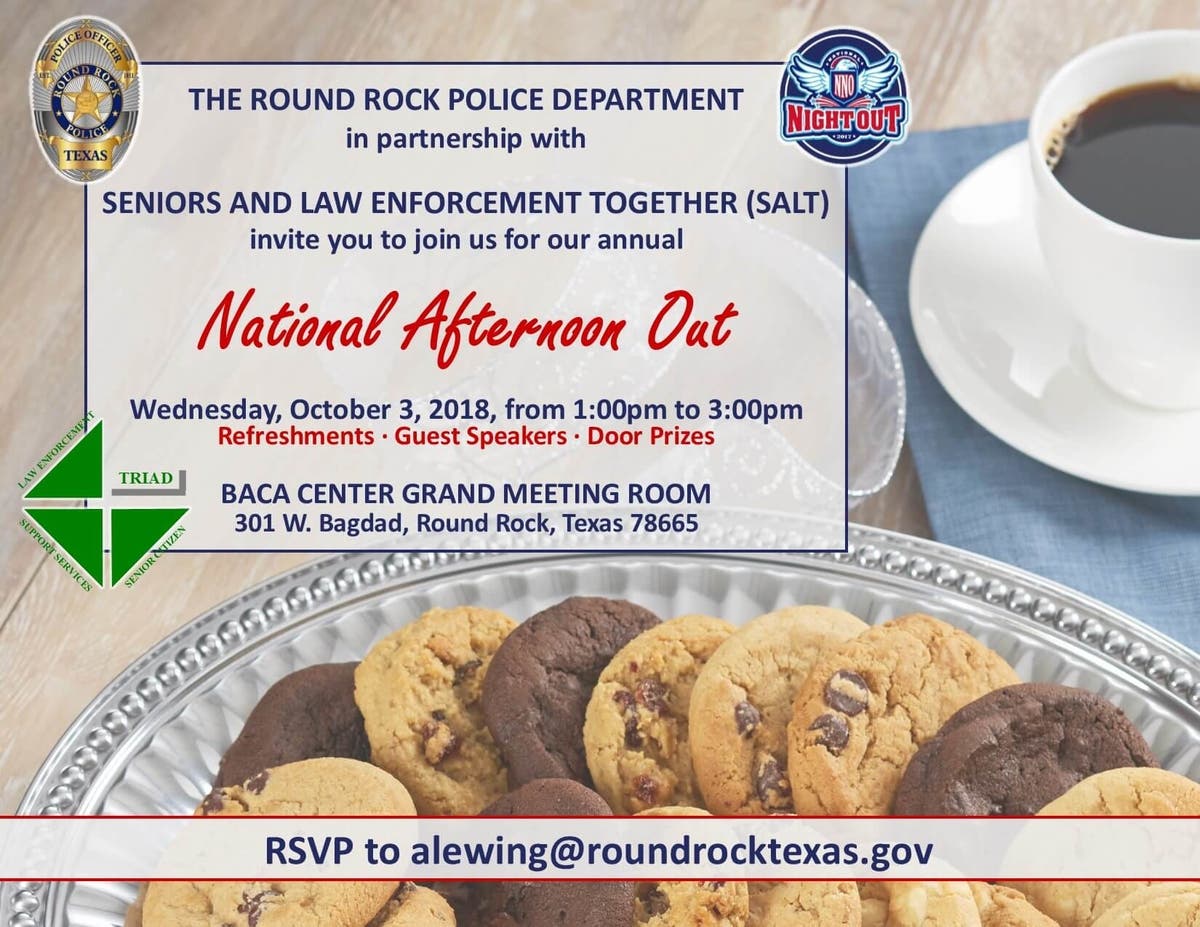- The next night, National Afternoon Out is scheduled Oct. 3 at the Baca Center. This event is tailored to senior citizens whose bedtimes might not allow to hang out all night for National Night Out. The senior version allows the older set to meet with each other and the police toward promoting neighborhood safety.