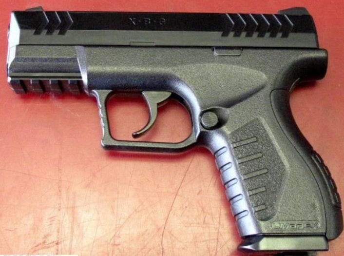 As authorities approached to disarm her, the woman had the weapon in her hands and pointed it at officers when one officer fired shots at the woman, according to police. The "weapon" the woman brandished was a replica semi-automatic BB gun, police said, including a picture of the model as part of their news release.