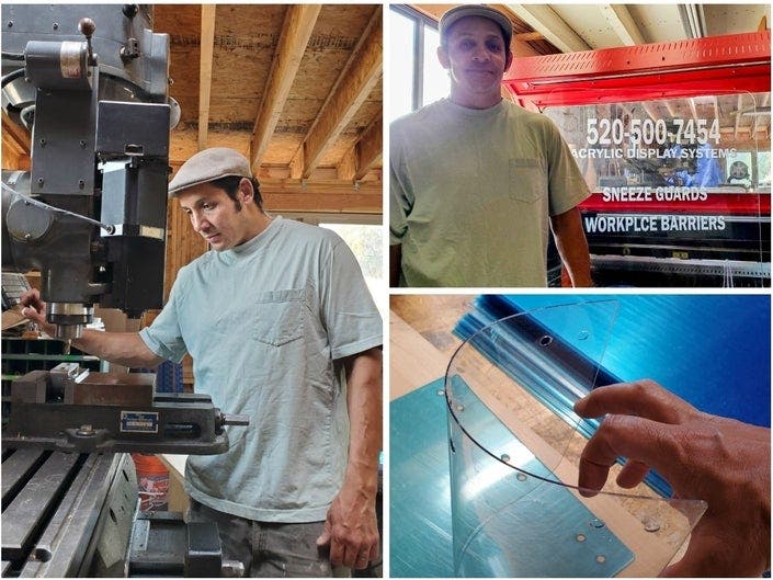 Jeremy Nichols was doing good business as a laser cutter and engraver before the coronavirus pandemic hit. Now, with many parts of public life restarting, Nichols is busier than ever after spending the last few months pivoting his business to reach the vast and varied demands for plastic partitions. "We're going to start seeing the need for partitions at every desk at school, computer labs, libraries," he said. "It's everywhere where you have possible interaction." By Danny Wicentowski on Tucson Patch