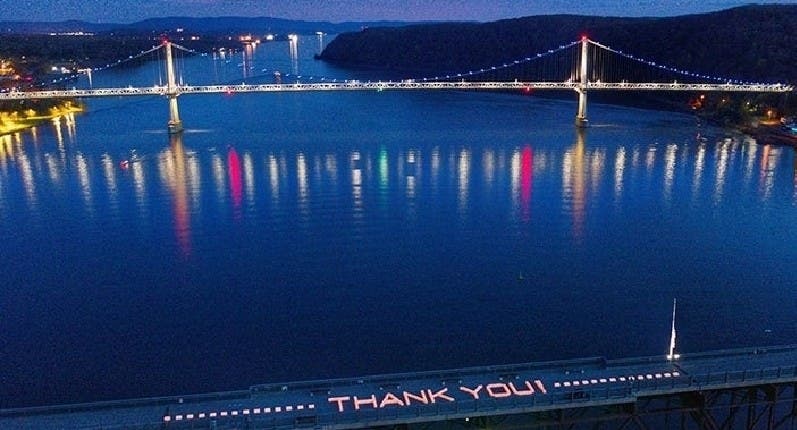 An iconic landmark in the Hudson Valley was lit up with more than 1,300 luminaries in a large display of gratitude to those whose jobs put them on the front lines of the fight against the coronavirus. By Michael Woyton on Mid Hudson Valley Patch.