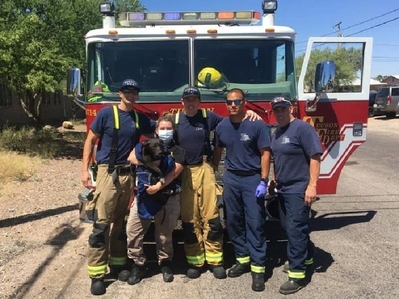 Firefighters rescue more than just people. At a Tucson construction site, a puppy fell 15 feet into a deep hole and was neck-deep in water and shaking when firefighters got to him. The pooch got a bath and checkup at the Pima County Animal Care shelter and is doing fine now. By Payton Potter on Tucson Patch.