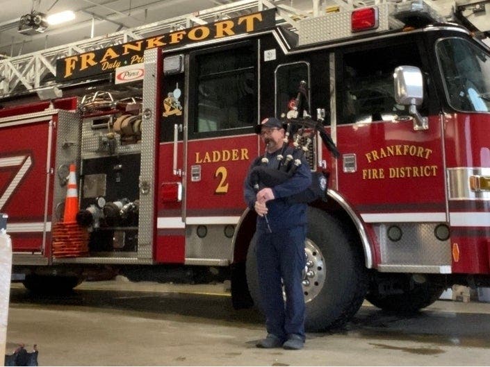 As day turns into night, Illinois firefighters and paramedics fill their lungs with air and begin playing bagpipes for what is called a “Sunset Solidarity” performance. Each evening, bagpipers go out and play a single tune “to mark another day of making it through the pandemic,” one of them explained. “It’s for mourning and grieving, and gratitude for a hopeful tomorrow.” By Andrea Earnest on Frankfort Patch.