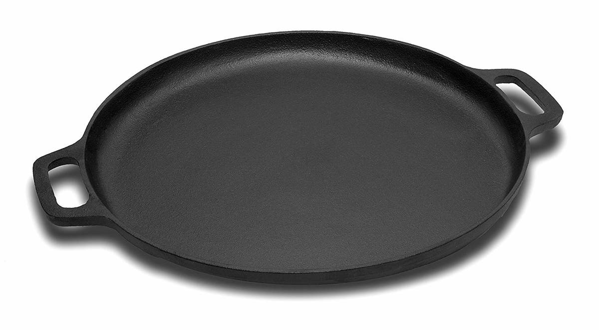 Take your frozen and homemade pizza game to the next level with this 13.5-inch cast iron pizza pan. The pre-seasoned pan is ideal for cooking, grilling, baking, searing and broiling in the oven, on the grill, on the stove and even on an open campfire. The cast iron construction offers better heat distribution for crispier, delicious pizza every time.
