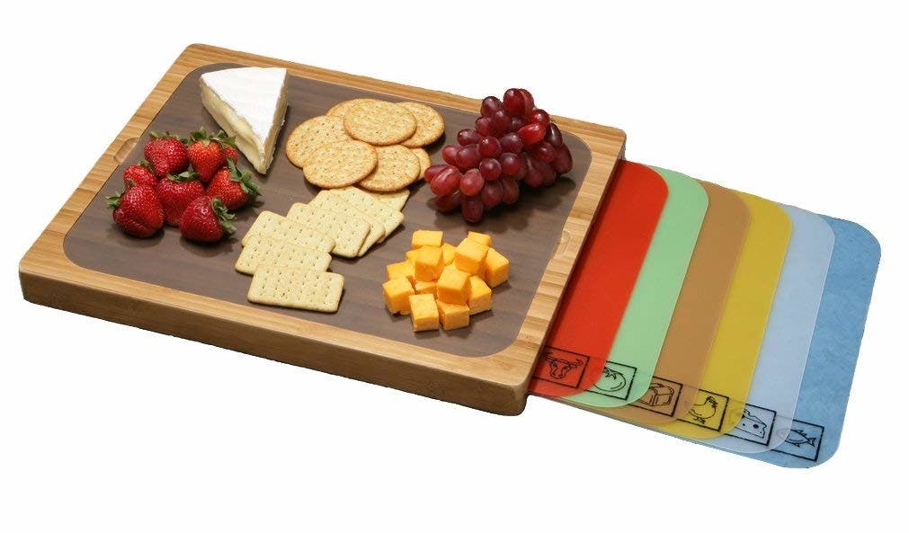 This cutting board set is an easy and attractive way to prevent cross-contamination. Each removable cutting mat fits securely into the grooves of the bamboo, and after each use, you can pop these BPA-free mats into the dishwasher for easy cleanup.