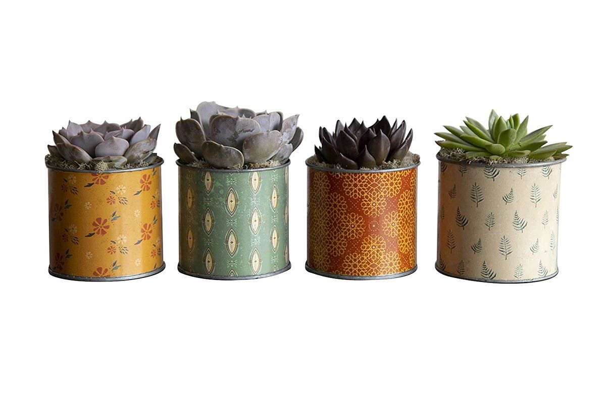 Why give flowers that'll be dead in a week when you can give live plants that can last for months or even years? These succulents come perfectly potted in 4-inch vintage spice tin containers. They're easy keepers — just make sure they're in a spot with plenty of indirect light and water monthly.
