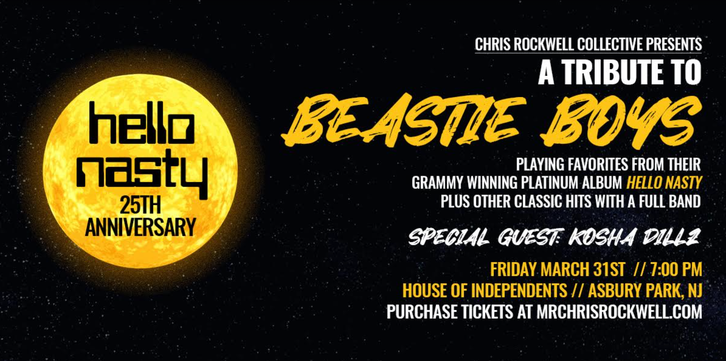 Asbury Park mainstays, Chris Rockwell Collective, will headline what promises to be a raucous evening, featuring loads of special guests and a set list of fan favorites. No strangers to the Beastie Boys catalog, the last time the group paid tribute to the iconic band was at The Stone Pony to a sold out crowd on New Year’s Eve 2018.