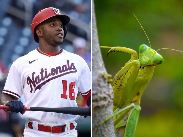 Bugs have commandeered their fair share of the spotlight in recent months. From Mike Pence's fly during the vice presidential debate to the cicada dive-bombing Joe Biden on a D.C. tarmac, it shouldn't surprise anyone that a praying mantis couldn't wait to make its debut in the limelight of a recent Washington Nationals baseball game.