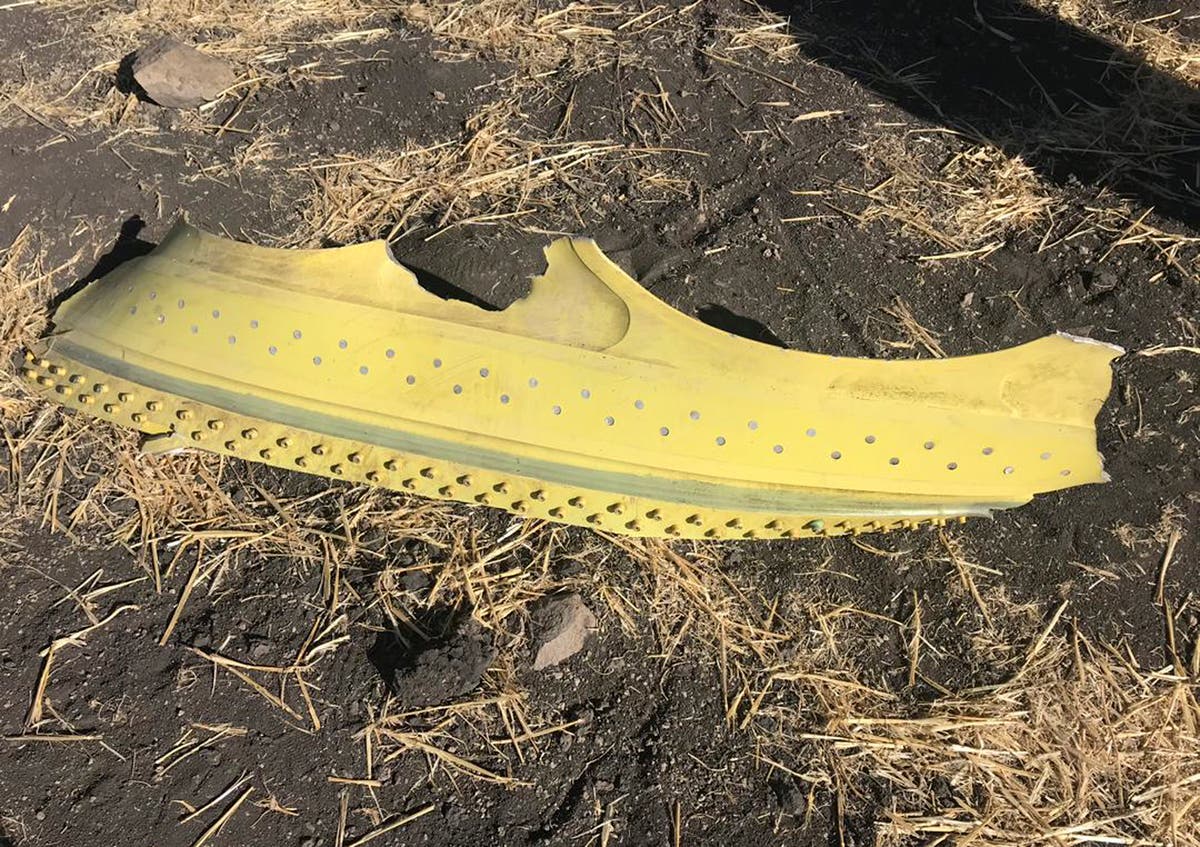 A piece of the wreckage of an Ethiopian Airlines flight that crashed shortly after takeoff lies at the scene at Hejere near Bishoftu, or Debre Zeit, some 31 miles south of Addis Ababa, in Ethiopia on Sunday.