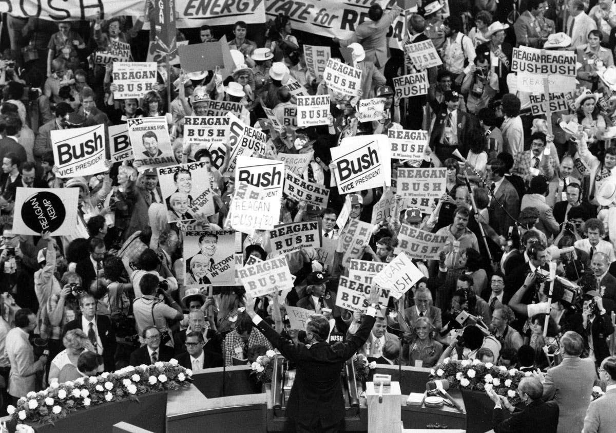 George H.W. Bush, center foreground, acknowledges the crowd before speaking to the Republican Convention delegates in Detroit, Michigan. (AP Photo/File)
