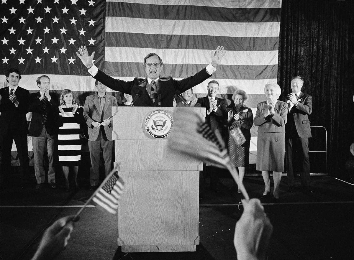 President-elect George H.W. Bush and his wife, Barbara, wave to supporters in Houston, Texas after winning the presidential election. (AP Photo/Scott Applewhite, File)
