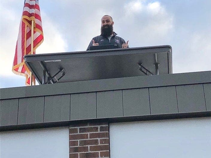 He moved his office to the roof and spent the day there after the students exceeded their fundraising goal for field trips, assemblies and a new playground by 113 percent.