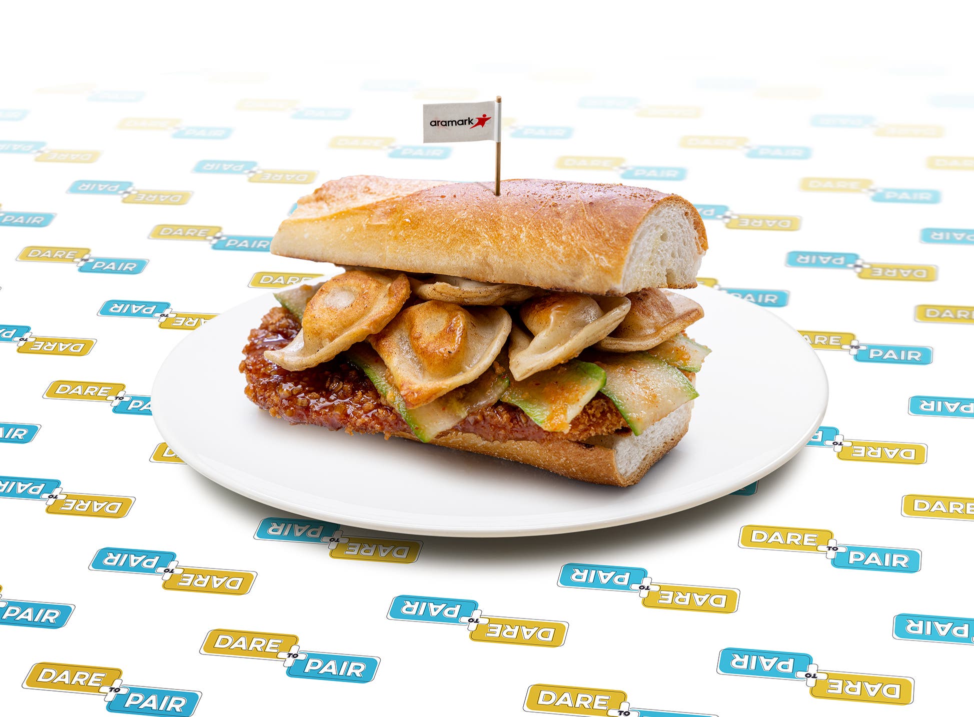 This offering consists of cucumber kimchi with bread-fried ham and mini pierogies piled high on a toasted roll with hoisin aioli. What could be bad about that?