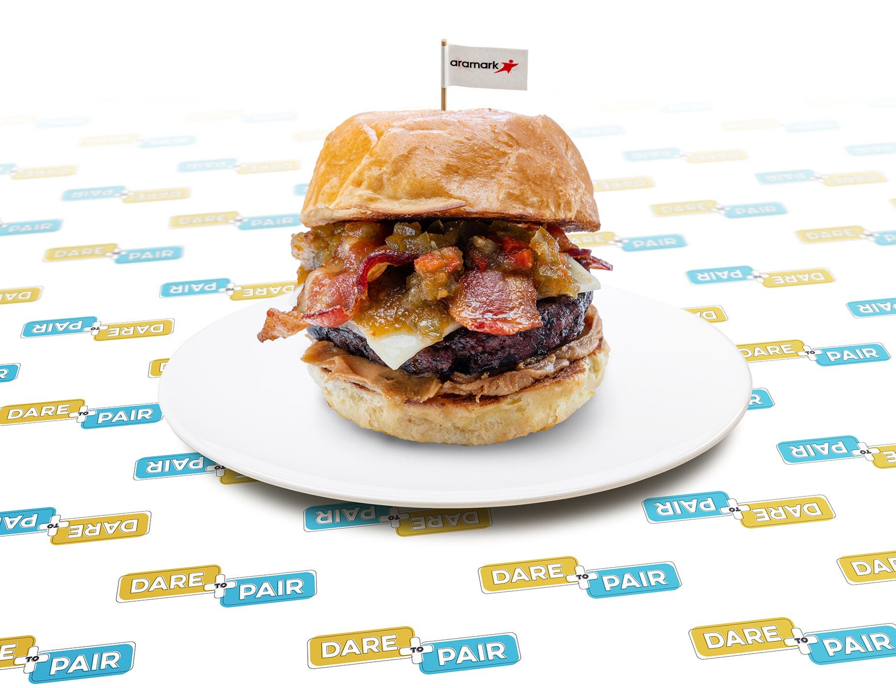 Special-blend Boardwalk Burger topped with peanut butter, jalapeño jelly, American cheese and bacon on a brioche bun.