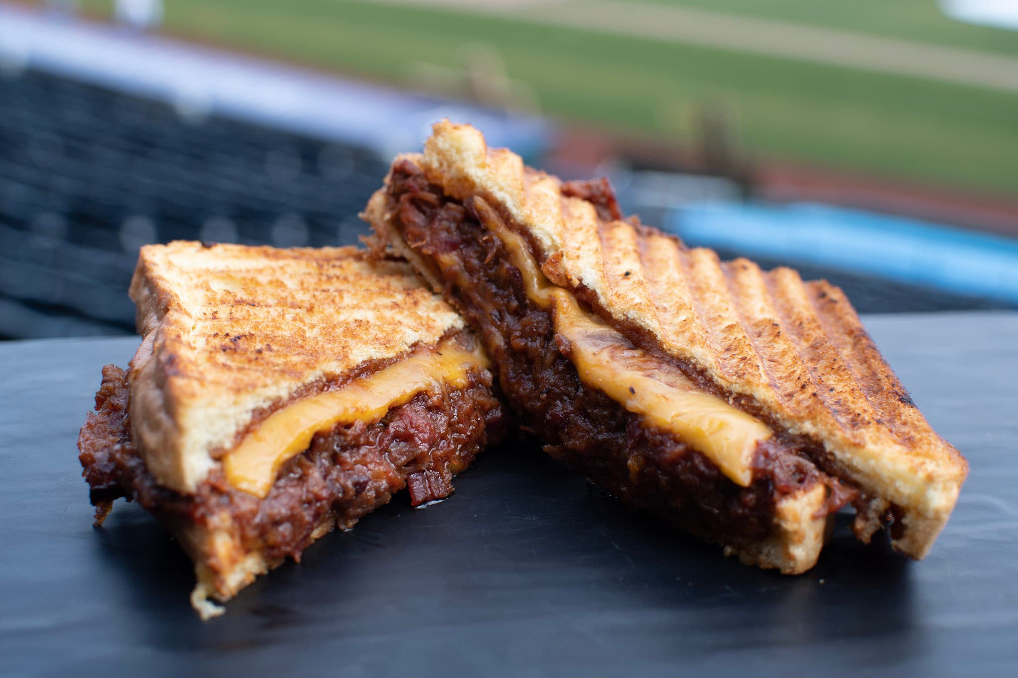 Smoked brisket, BBQ sauce, and cheddar cheese on Texas toast. Sounds like a grilled cheese you'll never forget!