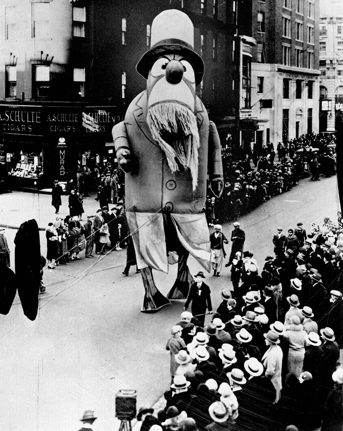 1929: A large outdoor float of Captain Nemo makes its way down the street during the Macy's Thanksgiving Day Parade in New York City, on Nov. 28, 1929. Originally known as the Macy's Christmas Parade, the Thanksgiving Day parade started in 1924. (AP Photo/File)