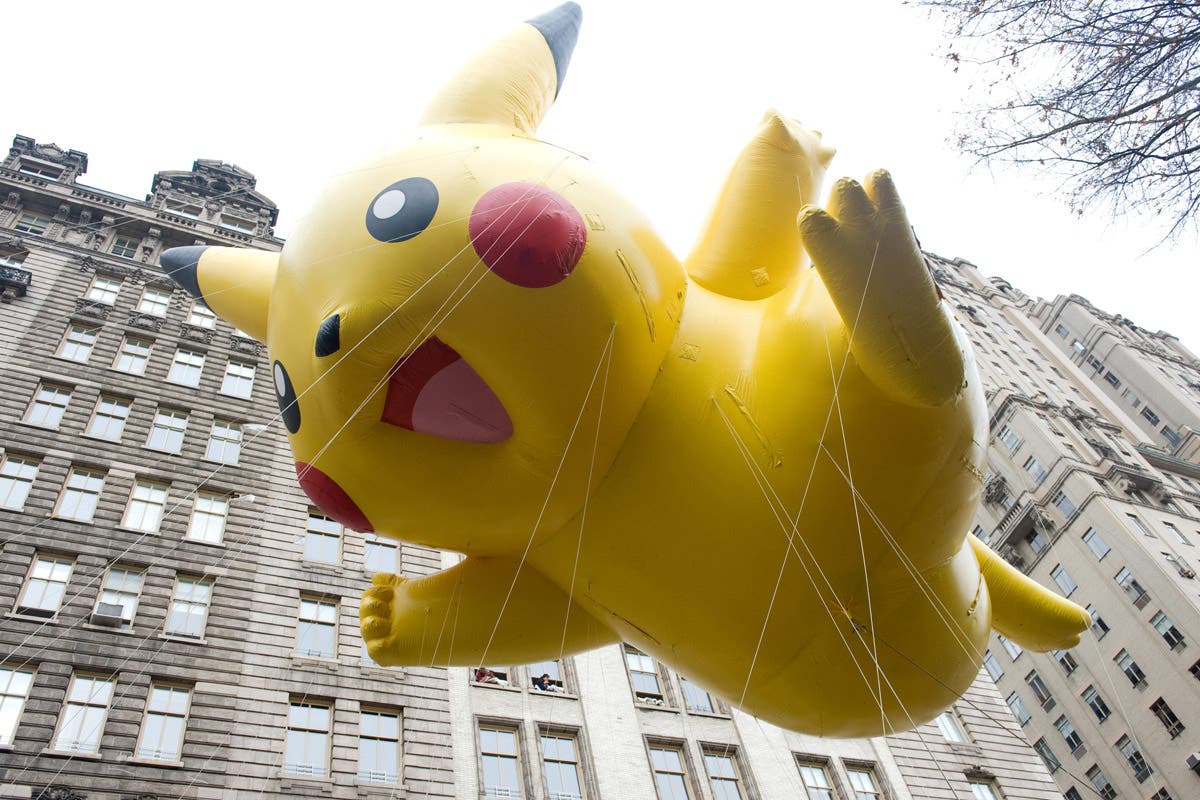 2009: The Pikachu Pokemon balloon seen at the 83rd Macy's Thanksgiving Day Parade in New York. (Charles Sykes/REX/Shutterstock)
