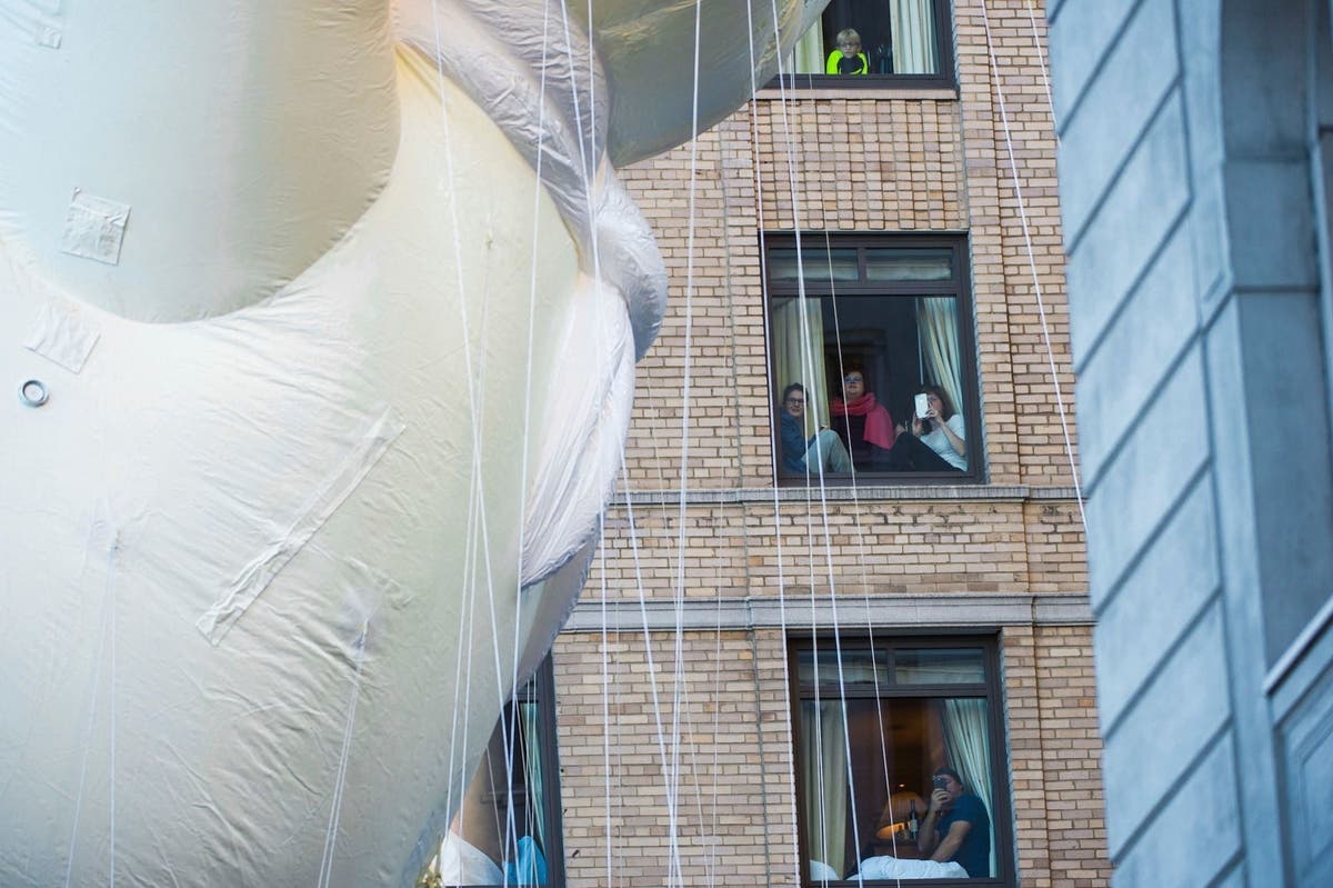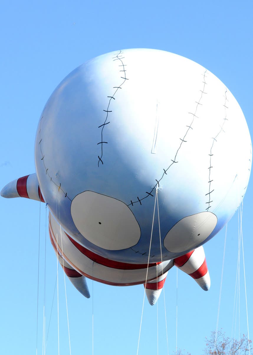 2017: A close-up shot of the Pillsbury Doughboy parade float shows just how larger-than-life these inventive creations are. (Invision/AP/REX/Shutterstock)