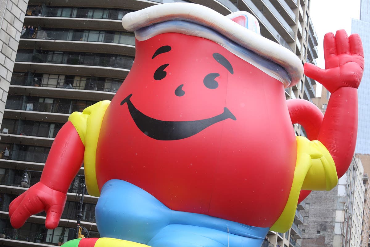 2014: The Kool-Aid balloon seen at the 88th Macy's Thanksgiving Day Parade in New York. (Erik Pendzich/REX/Shutterstock)