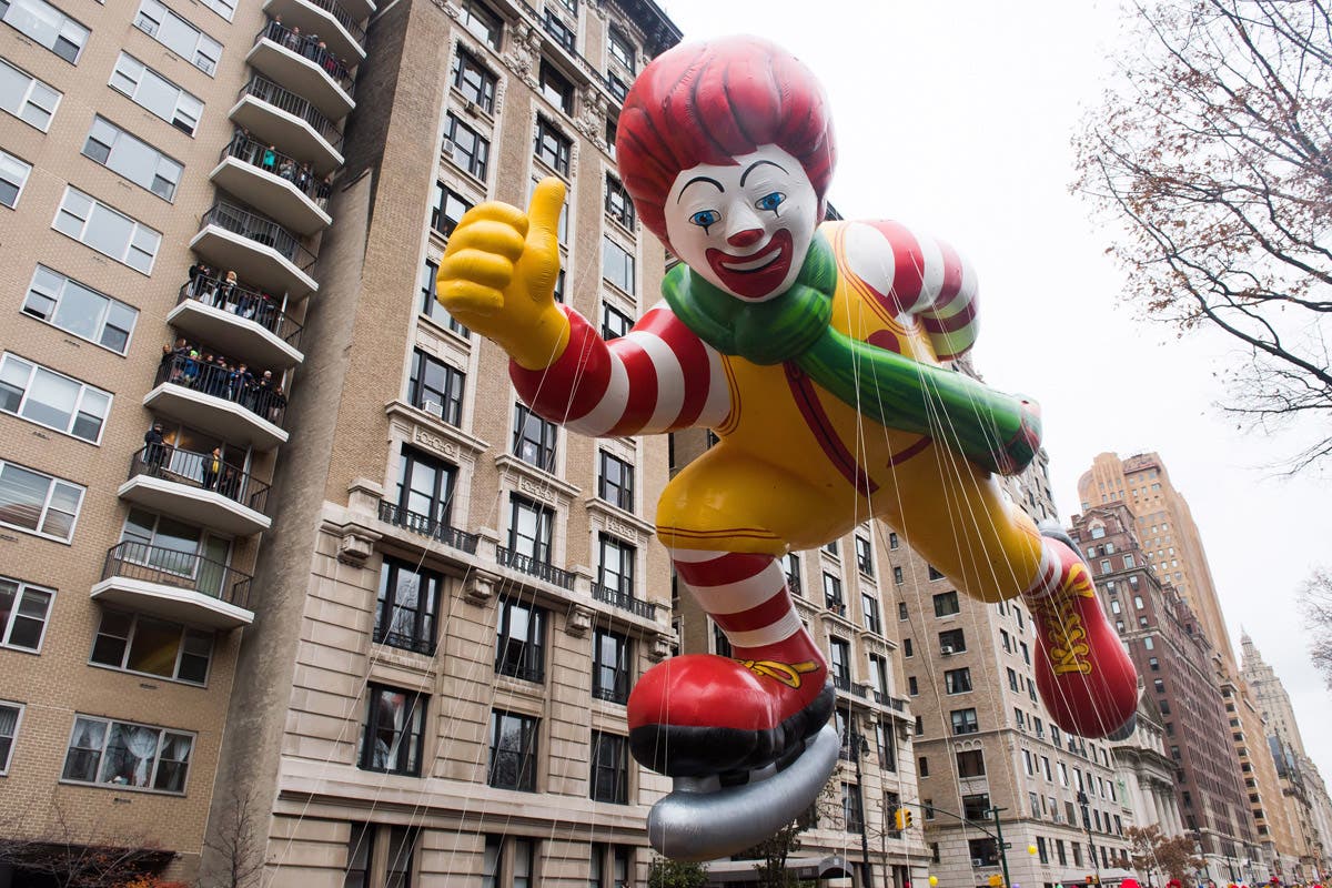 2014: The Ronald McDonald balloon seen at the 88th Macy's Thanksgiving Day Parade in New York. (Charles Sykes/Invision/AP/REX/Shutterstock)