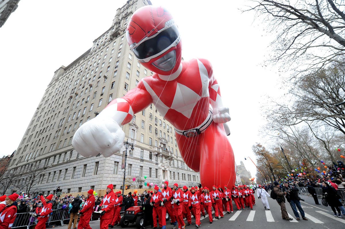 2014: The Red Mighty Morphin Power Ranger makes his legendary debut at the 88th Macy's Thanksgiving Day Parade in New York. (Diane Bondareff/Invision/AP/REX/Shutterstock)