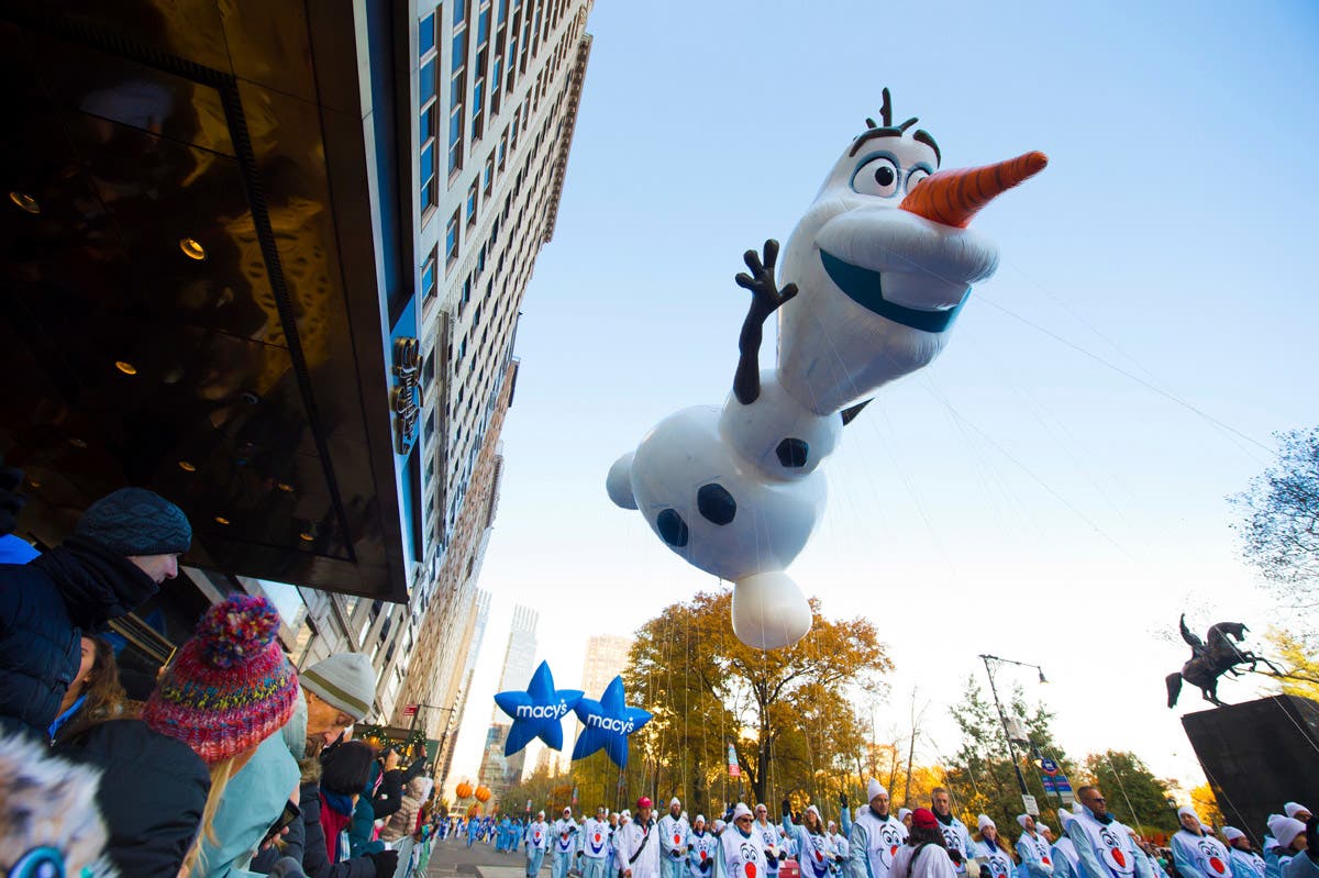 2017: The Olaf float appears at the 91st Macy's Thanksgiving Day Parade in New York. (Invision/AP/REX/Shutterstock)