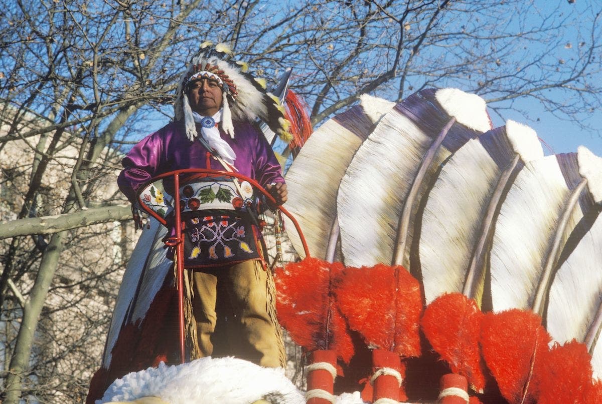 1995: A Native American rides a float in Macy's 50th annual Thanksgiving Parade in New York City. (Stock Connection/REX/Shutterstock)