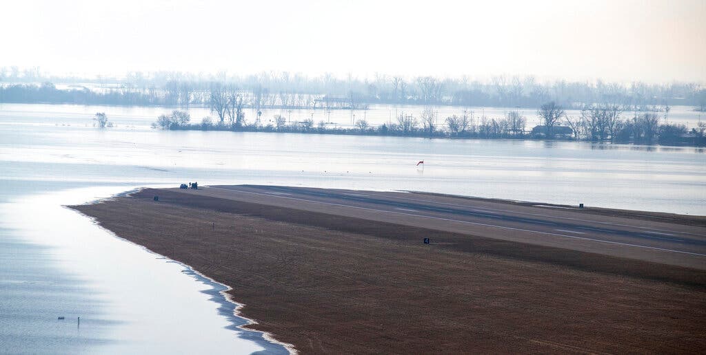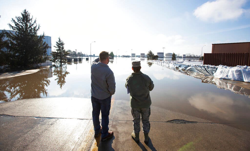 Offutt Air Force Base south of Omaha, Nebraska, showed pictures on Facebook that showed large sections of the base under water. About 60 buildings were affected, and 30 were completely under water.