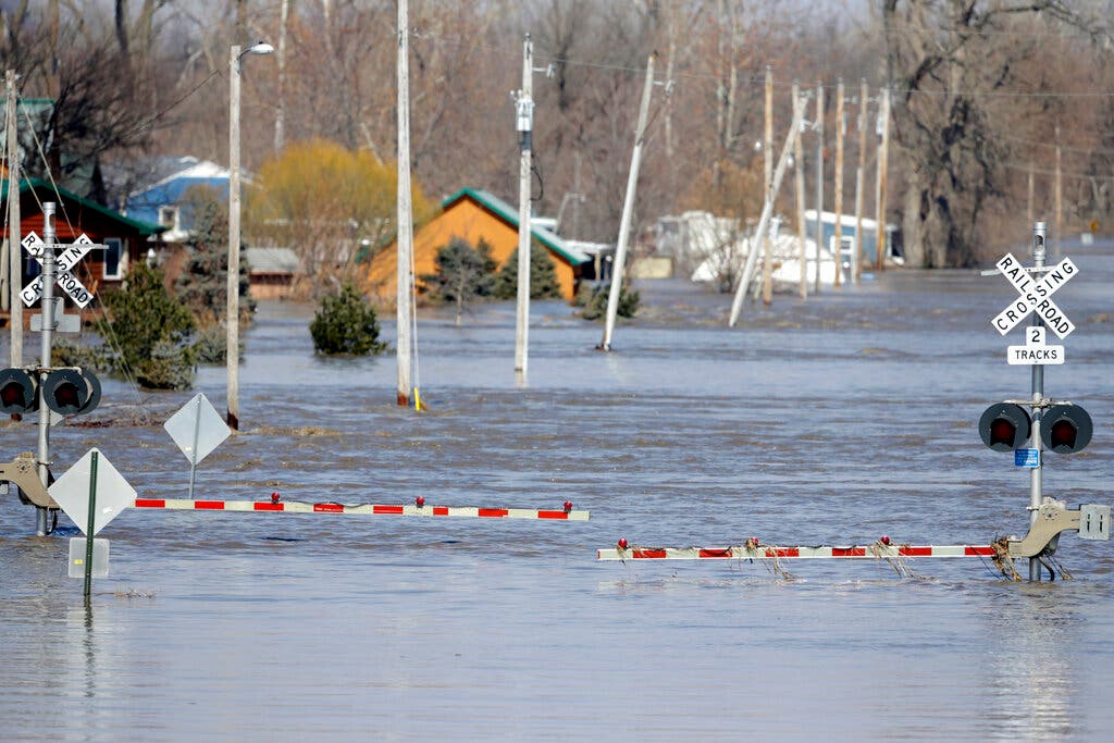 Snow melt, precipitation from "bomb cyclone" swamp entire towns in Nebraska and Iowa, as Missouri and Kansas brace for record flooding.